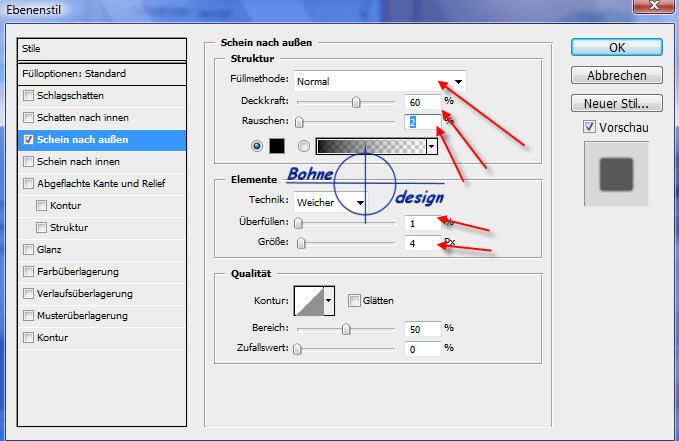 17. Ebenenstil hinzufügen-> Schein nach außen