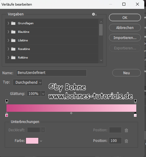07) Neue Ebene erstellen . Stelle deine Verlauf jetzt so ein