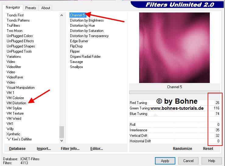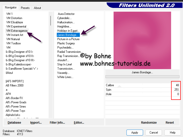 Filter -> VM Extravaganza - James Bondage, mit dieser Einstellung
