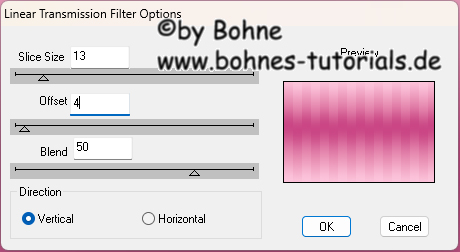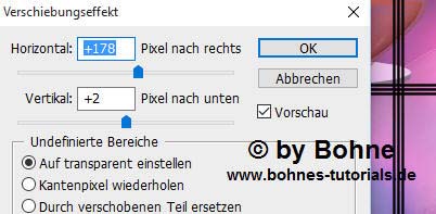 12) Öffne die Tube "la_cross" und ziehe sie auf dein Bild.  Filter -> Sonstige Filter -> Verschiebungseffekt