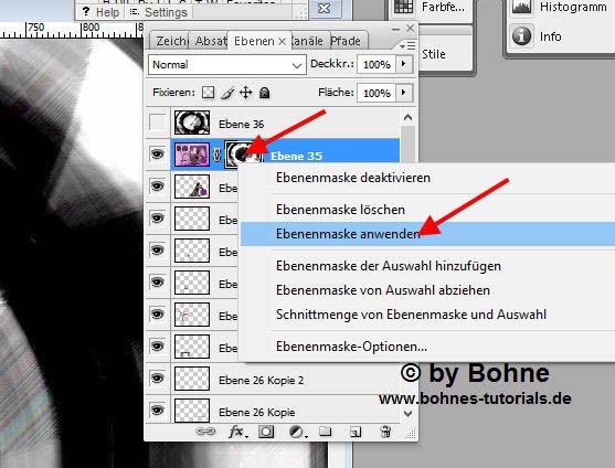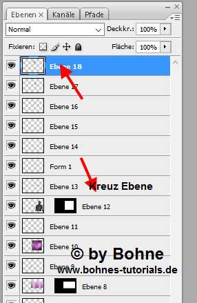 Kannst es nach Belieben auch Horizontal spiegeln.  Klicke nun in der Ebenenmanager mit der linken Maustaste auf das Bild Ziehe die Ebene mit gehaltener Maustaste nun bis vor die Ebene 13 (des schwarzen Kreuzes)