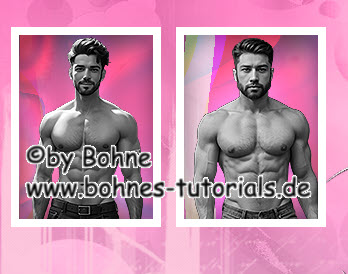 23) Auswahl erneut auswählen  Öffne  nun das letzte der 3 Oberkörper Tuben Verkleinern auf eine Höhe von 250px, bzw. nach Bedarf falls Du dein eigens Tube verwendest.  Mit Strg+A und Strg+C alles auswählen und kopieren  Mit Umschalt+Strg+V in die Auswahl einfügen  Verschiebe den Oberkörper in den linken Rahmen