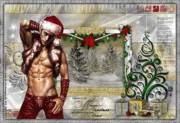 Wenn du magst füge einen Schlagschatten hinzu.      15) Öffne nun den Brush "LA_chritmas text brush" und füge ihn in dein Bild ein,  Verschiebe ihn dort hin wo es dir gefällt, ich habe ihn zwischen den Tube und den Geschenke Set gesetzt.