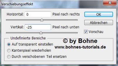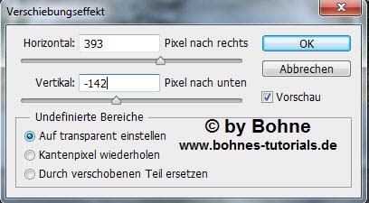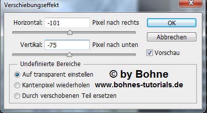 Ziehe sie mit gedrückter Umschal-Taste auf dein Bild. Filter -> Sonstige Filter -> Verschiebungseffekt mit diesen Werten