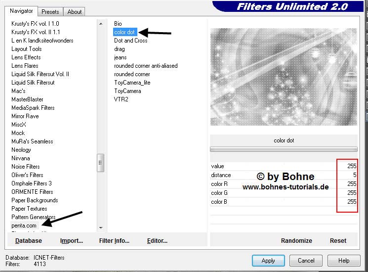 04)  Auswahl -> Auswahl laden -> such dir "Bohne #1" heraus