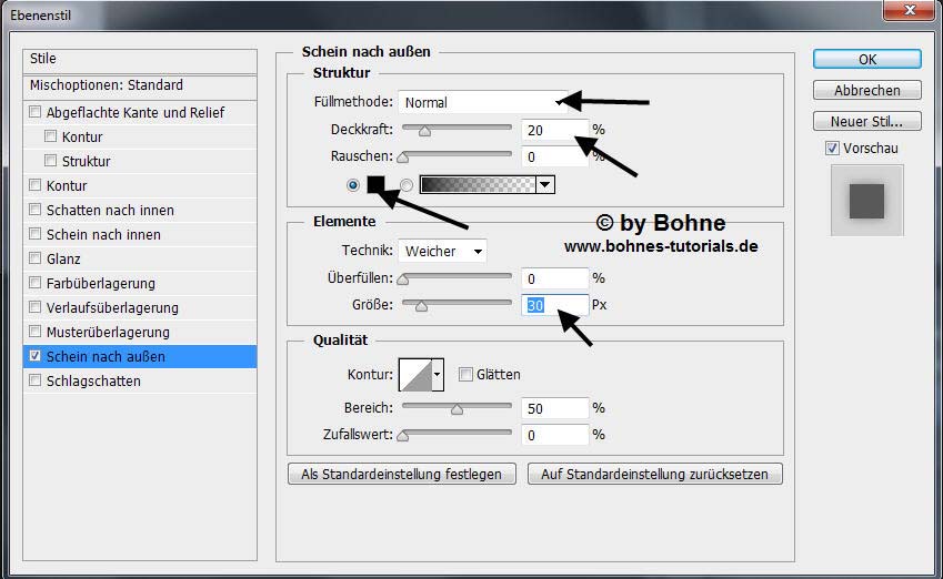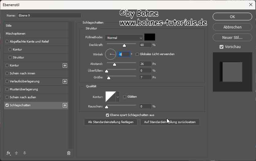 16) Ebenenstil hinzufügen -> Abgeflachte Kante und Relief