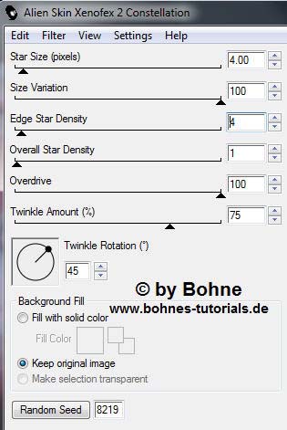 Filter -> Alien Skin Xenofex2 -> Constellation, drücke einmal Random Seed