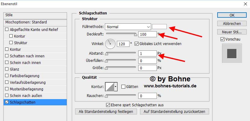 10) Aktiviere abermals die Ebene "Frau 1"  Ebenenstil hinzufügen -> Schlagschatten