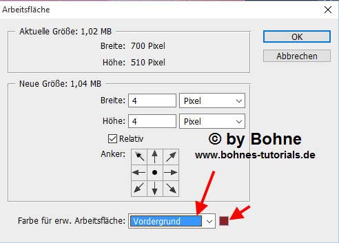 Bearbeiten -> Muster festrlegen  Aktiviere die unterte Ebene (Hintergrundebene) Bild -> Arbeitsfläche -> Erweitern um 4 Pixel in deiner dunklen Farbe