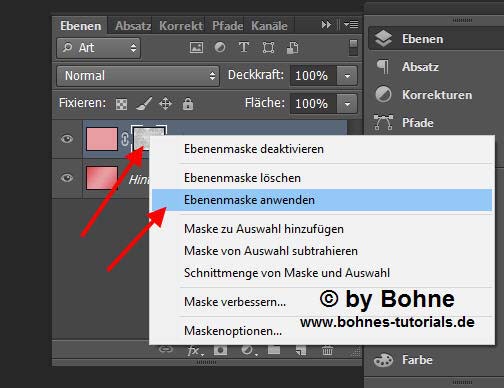 Jetzt kannst Du die Ebene 2 (die Maske) wieder löschen Rechter mausklick auf die Ebenenmaske und "Maske anwenden"
