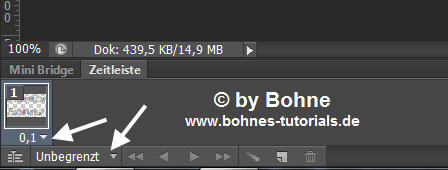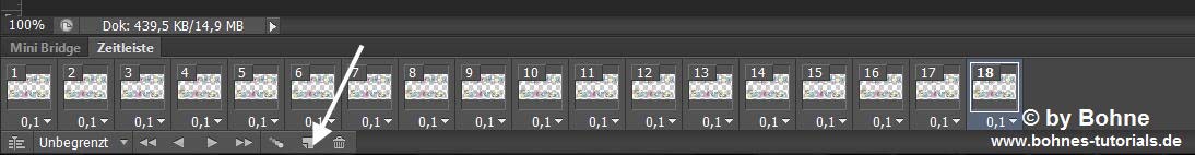 und stelle die Frame Verzögerung auf 0,1 Sekunde und Unbegrenzt ein    19. Klicke nun 17 mal das " Dupliziert ausgewähle Frames" Symbol