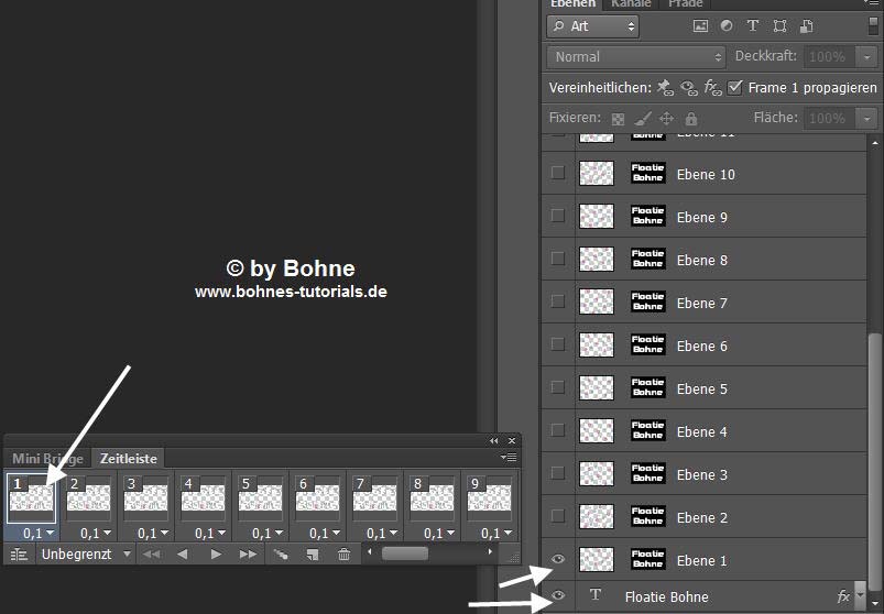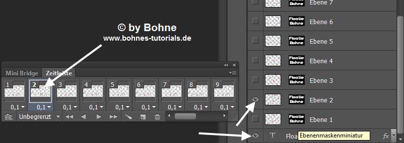 21. aktiviere Frame2 und stelle sicher das nur Ebene2 und die Textebene sichtbar ist