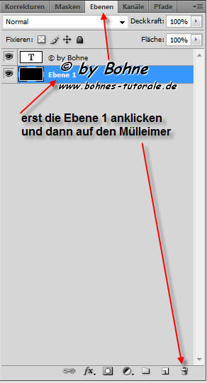 8) Lösche die erste Ebene, die schwarz gefüllt ist, in dem du diese Ebene aktivierst und auf das