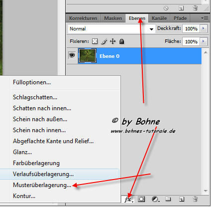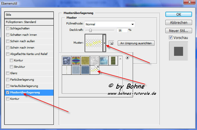 13) gehe auf Ebenenstil hinzufügen und wählt dort Musterüberlagerung