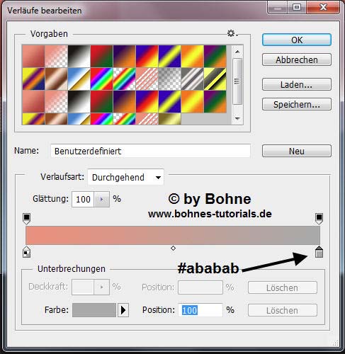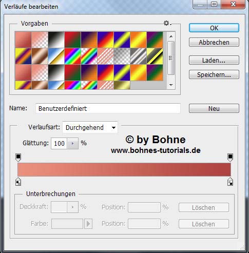 Öffne die Maske "maskcameron123"  Bearbeiten -> Muster festlegen    01) Öffne die Datei "auswahl-yin&yang.psd"  Und eine neue Datei in größe 750 x 225 PX   suche dir aus deiner Tube eine helle VGF (#f58e7d)  und eine dunkle HGF (#b83d3b). Erstelle dir folgenden Verlauf: