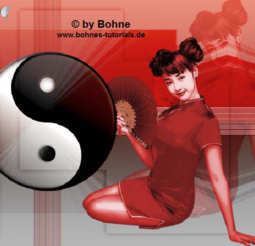 Verkleinere es auf 50%. Kopieren und  in dein Bild einfügen,   Verschieb es nun in die linke untere Ecke   Stelle den Mischmodus auf "Luminanz".      11) Die Tube "la_asia_since" öffnen Verkleinere es auf 20%  Füge es  in dein Bild ein.  In die obere linke Seite verschieben, siehe Bild