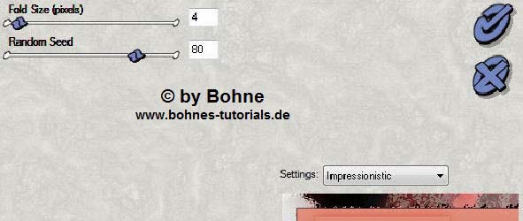 Stelle den Mischmodus auf "Multiplizieren" Ebene -> Auf Hintergrundebene reduzieren      17) Bild -> Arbeitsfläche erweitern um 2 PX in Schwarz  Bild -> Arbeitsfläche erweitern um 30 PX in Weiß Aktiviere den Rand mit dem Zauberstab Filter -> Simple -> Quick Tile, mit Standardeinstellung    Filter -> Alien Skin Xenofex 1 -> Origami, mit dieser Einstellung